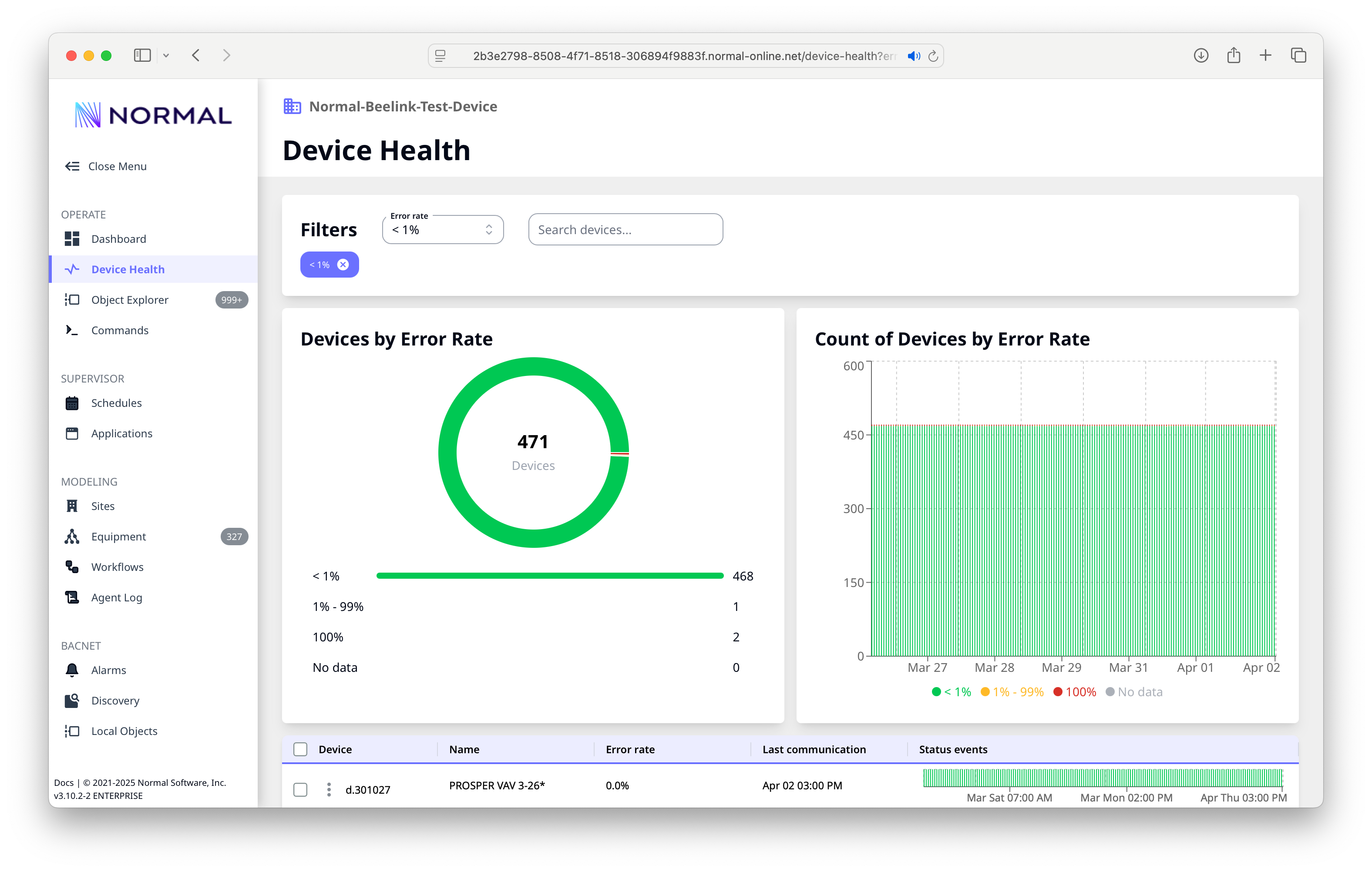 Use the error rate filter to quickly find troubled devices.
